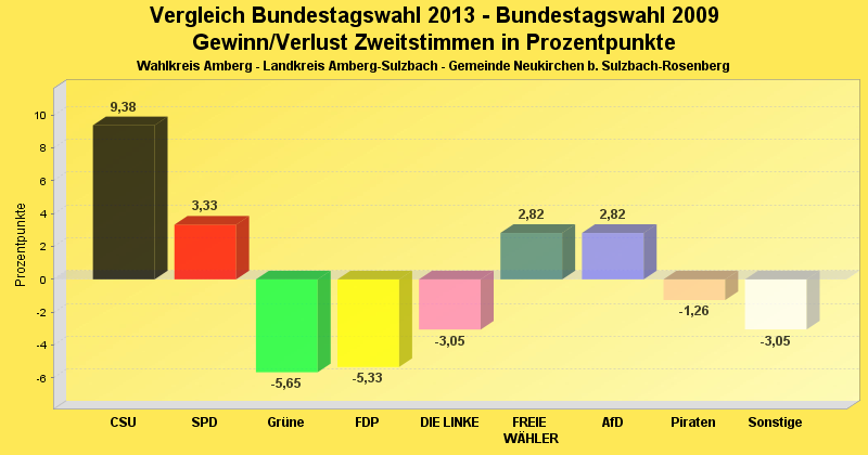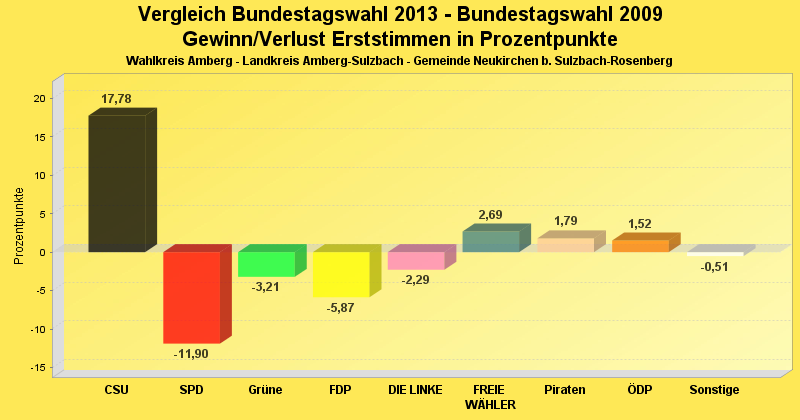 | Partei | Zweitstimmen 2013 | Prozent 2013 | Zweitstimmen 2009 | Prozent 2009 | |