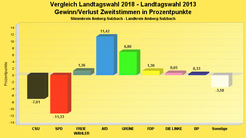 | Partei | Zweitstimmen 2018 | Prozent 2018 | Zweitstimmen 2013 | Prozent 2013 | |